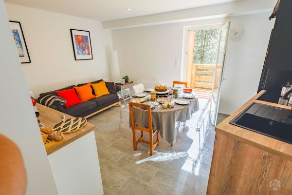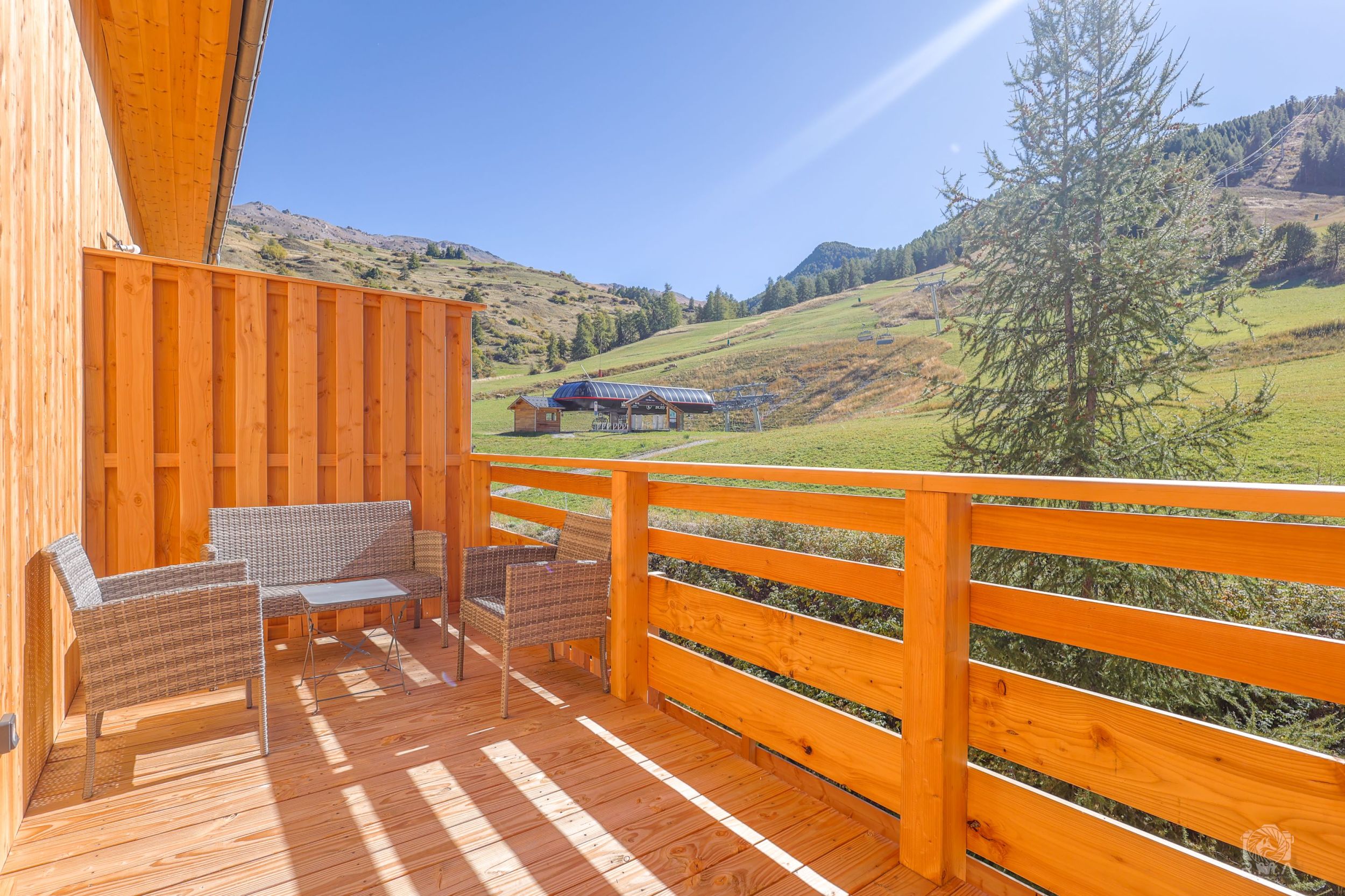 Enjoy L'HYSOPE, a 4-bedroom duplex apartment with a balcony and panoramic views of the village, mountains and slopes – ideal for 2 to 6 people!