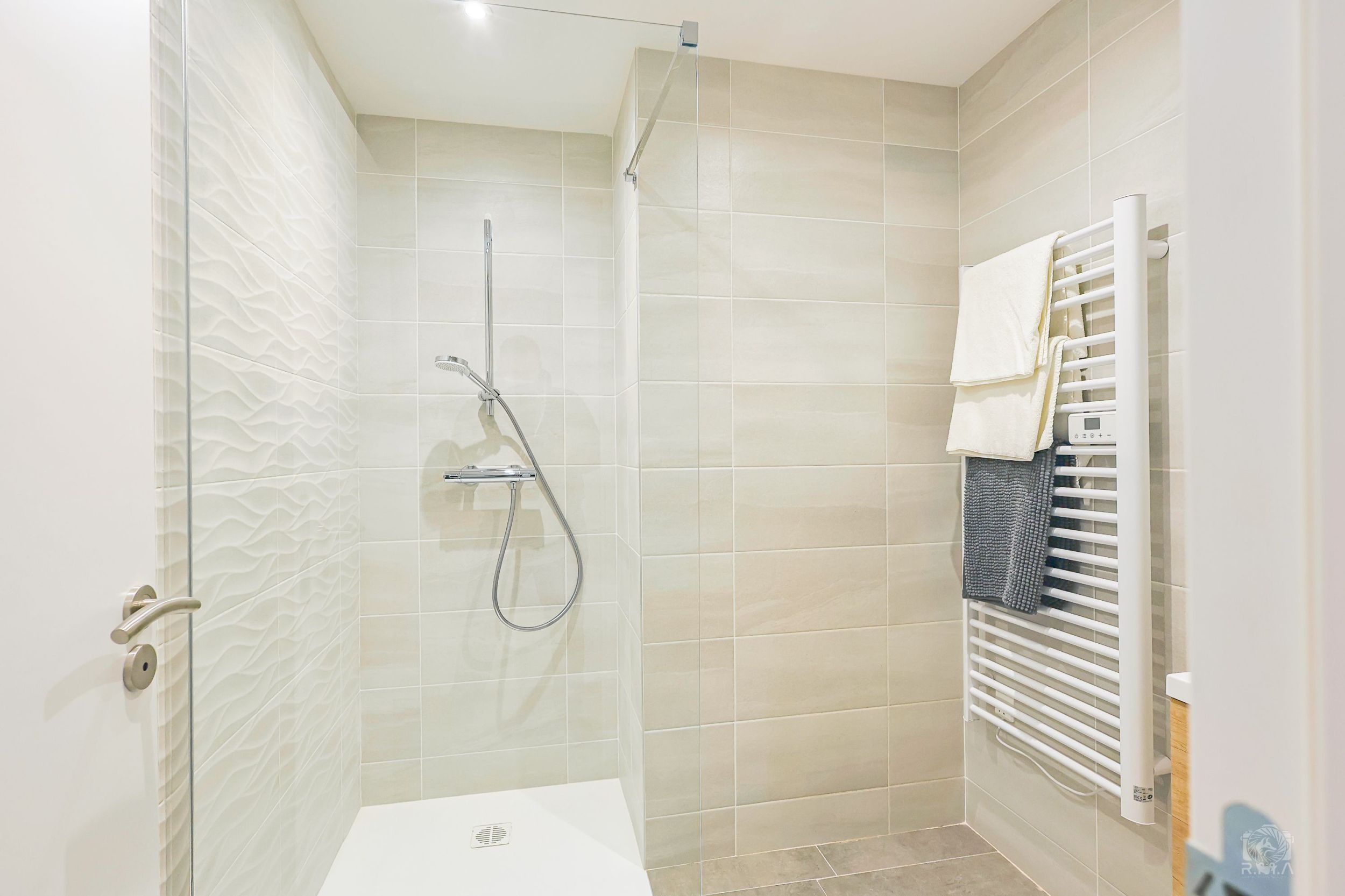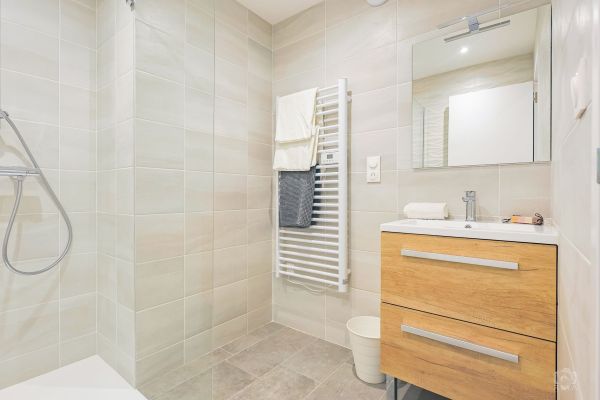 - Salle d’eau : douche, WC et sèche-serviette.