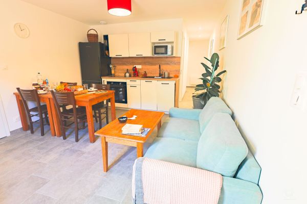 - Séjour : 17 m² avec cuisine ouverte tout équipée.